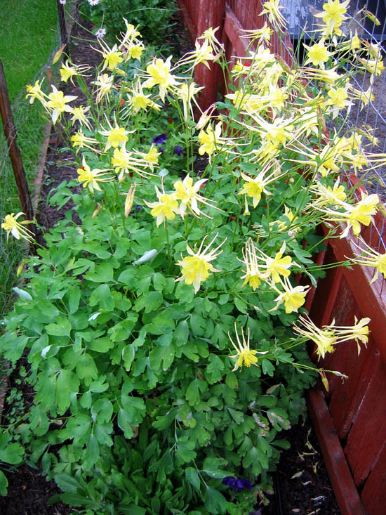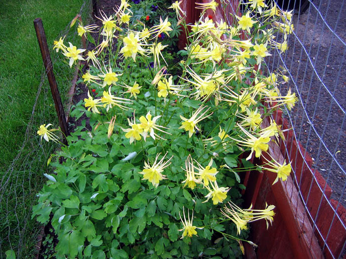 leaflets. It has pretty nodding pale to golden yellow flowers with long,